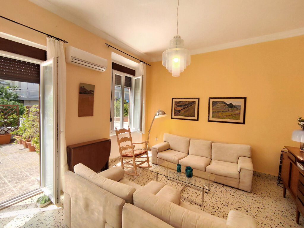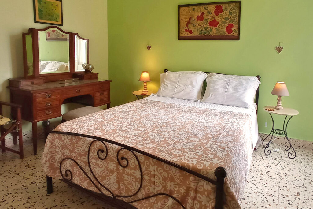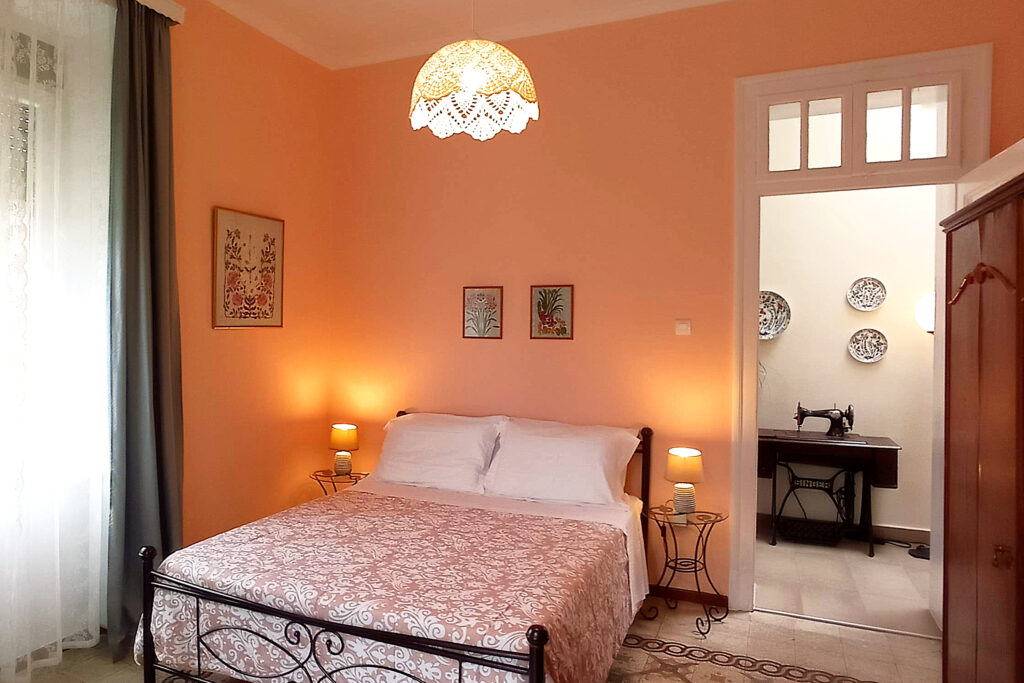 The second bedroom overlooks the neighboring building with its distinctive Italian-era architecture, along with the impressive large “Plumeria Ρubra” tree, adding a unique and charming character to the space.