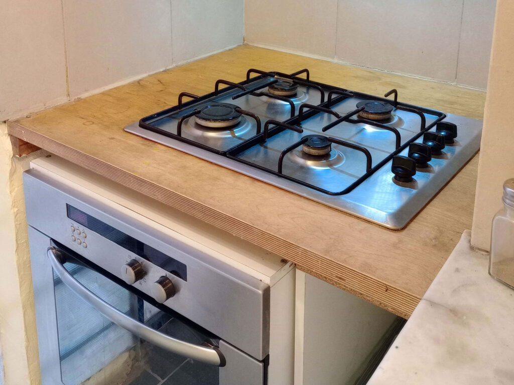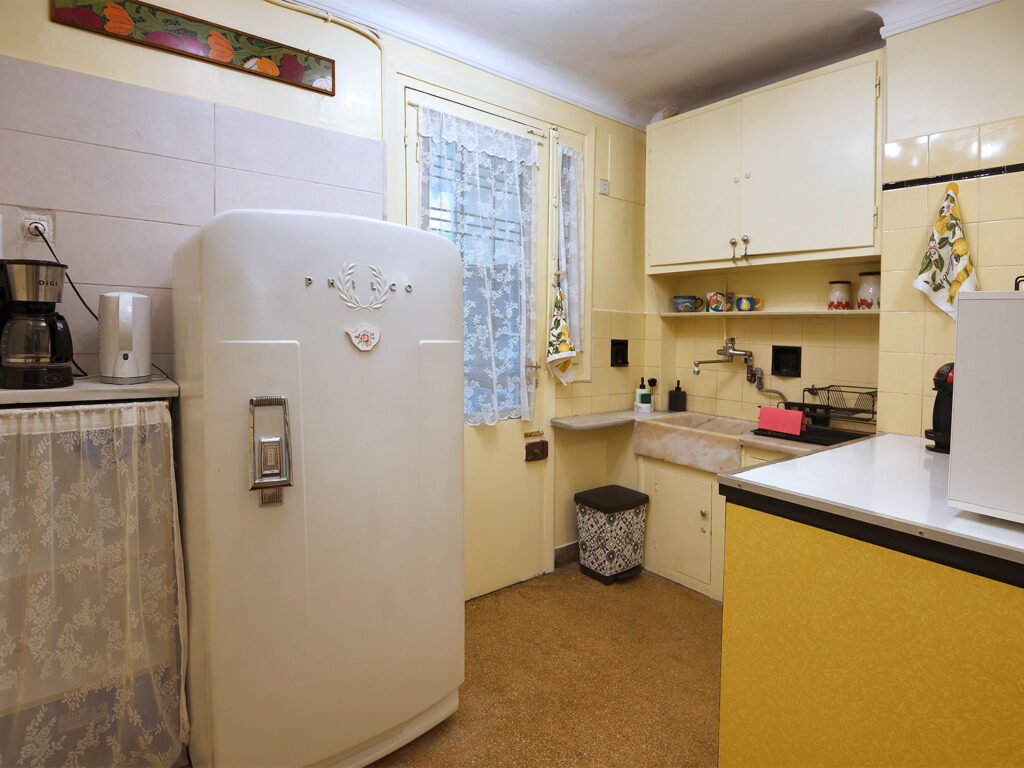 Following the 1950s architectural style, the kitchen is thoughtfully divided into three distinct areas: